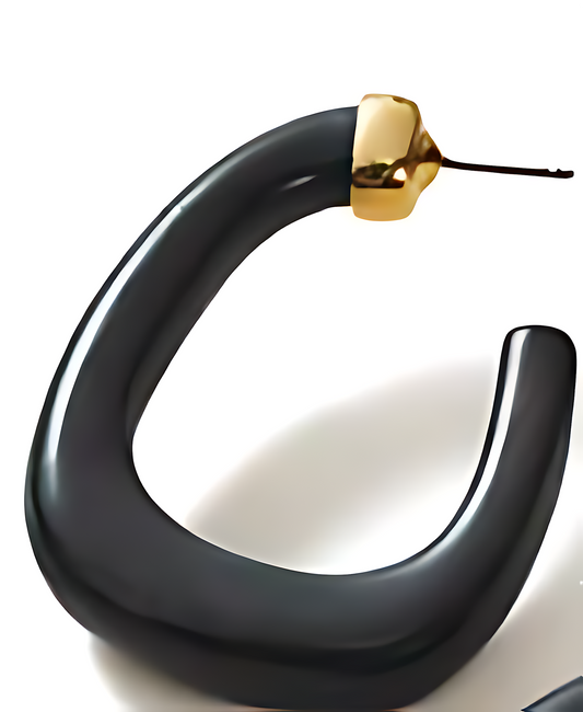 Hoop Earrings Miramar Black,in 24 k Gold plated with veined in Camelia
