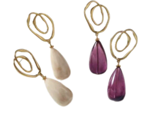 Earrings Caliza Stone,24 Gold Plated in Beige and Burgundy